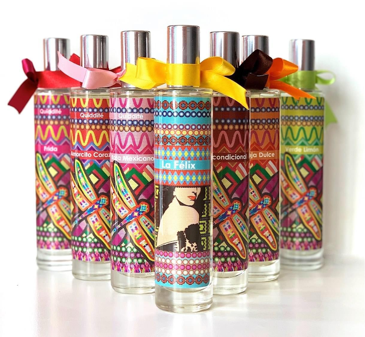 Todos están inspirados en los colores y en las tradiciones de nuestro país, pero sobre todo por el amor, admiración y respeto que sentimos de ser mexicanos. Cada una de las botellitas, tanto de fragancia fina como aromatizantes, están elaboradas artesanalmente; todo el proceso de fabricación, mezcla, llenado, etiquetado, moños, mecate, etc. están ensamblados a mano. Por ello, cada vez que compras una botellita, te estarás llevando un pedacito de nuestro trabajo, tiempo y amor.